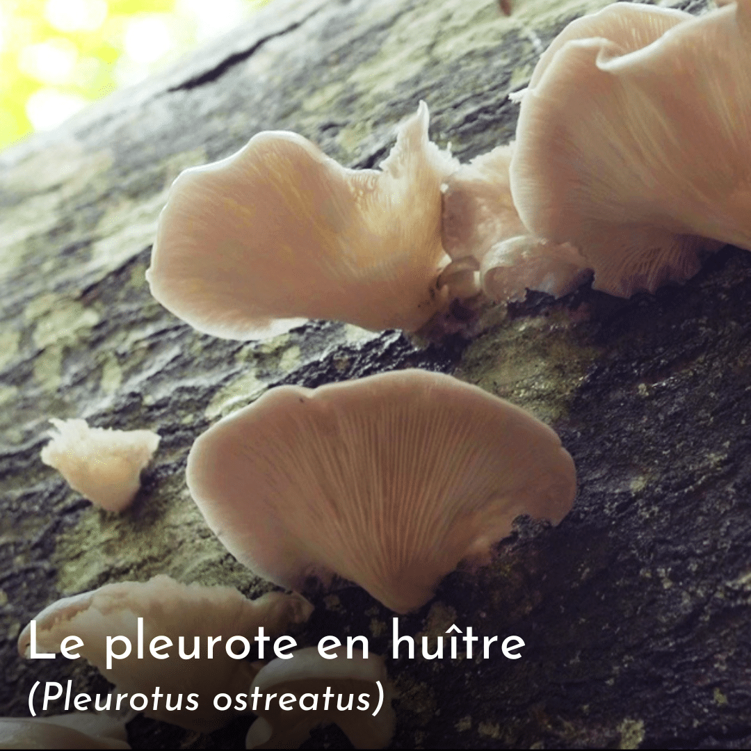 Le pleurote en huître est un champignon comestible qui pousse sur les feuillus (chênes, hêtres, etc.), souvent sur du bois mort.
