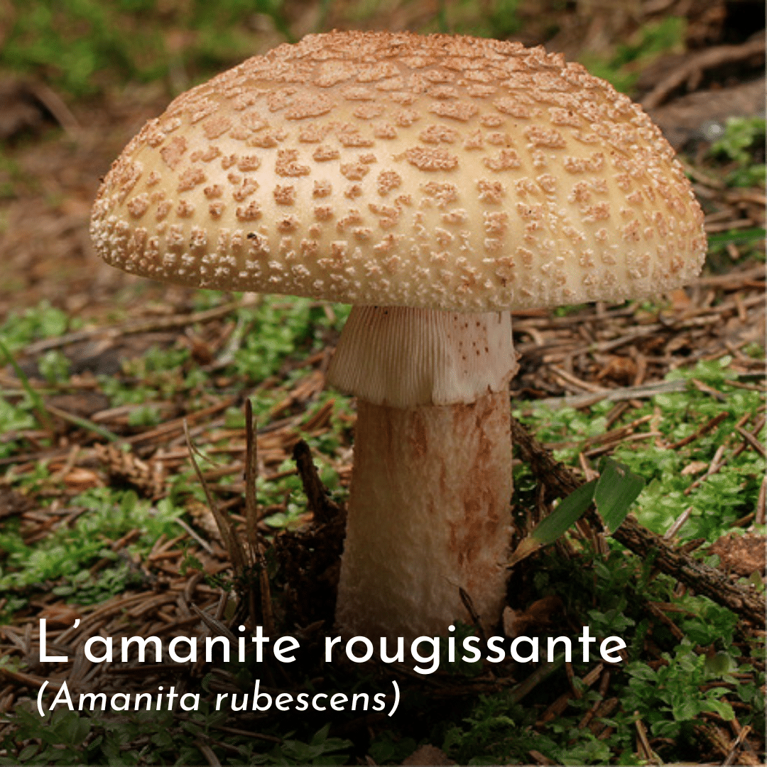 Le troisième champignon est l’amanite rougissante (Amanita rubescens), également appelée golmotte ou amanite vineuse.