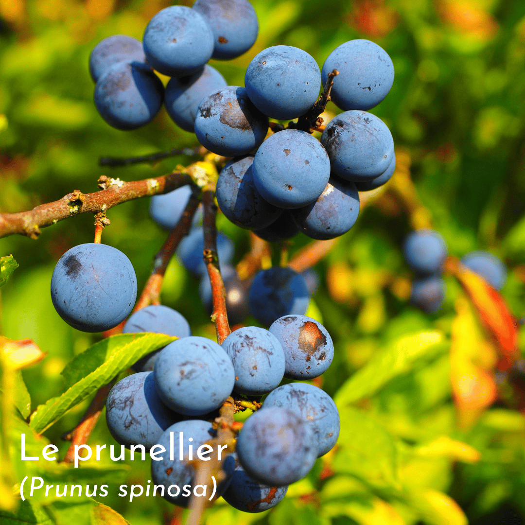 Aussi appelé épine noire, le prunellier est un arbrisseau épineux aux rameaux sombres qui produit à l’automne, de petites prunelles bleutées recouvertes d’une pruine blanche.