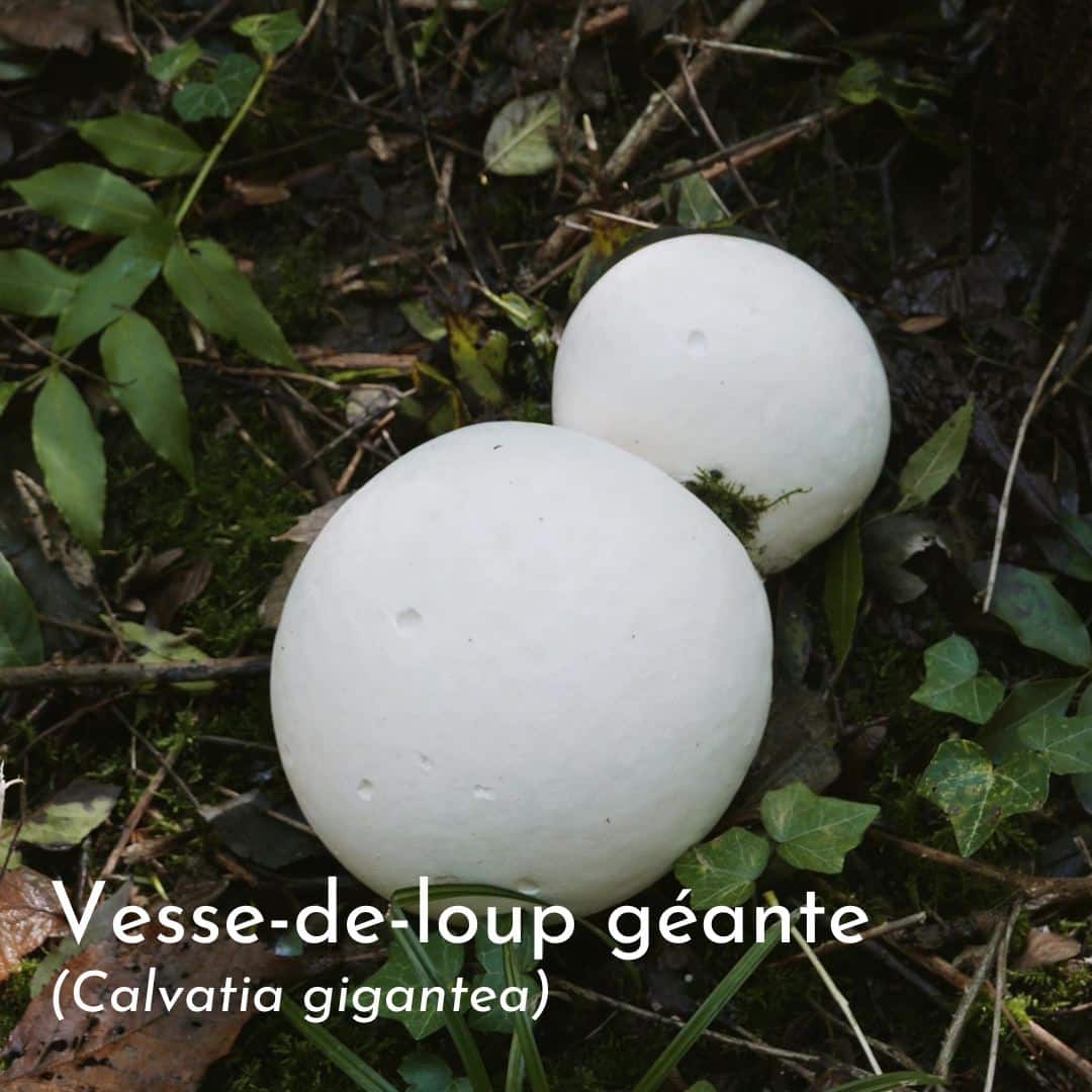 Il existe aussi la vesse-de-loup géante (Calvatia gigantea), impressionnante par sa taille lorsqu’elle atteint sa maturité. Tant que l’intérieur reste blanc, elle peut être dégustée. Mais dès qu’on observe une coloration brune ou noire, il ne faut plus la consommer. En appuyant dessus lorsqu’elle est vieille, on voit s’échapper un petit nuage de spores, d’où leur surnom populaire de « pets-de-loup ». Mais attention à ne pas respirer les spores qui peuvent être irritantes.